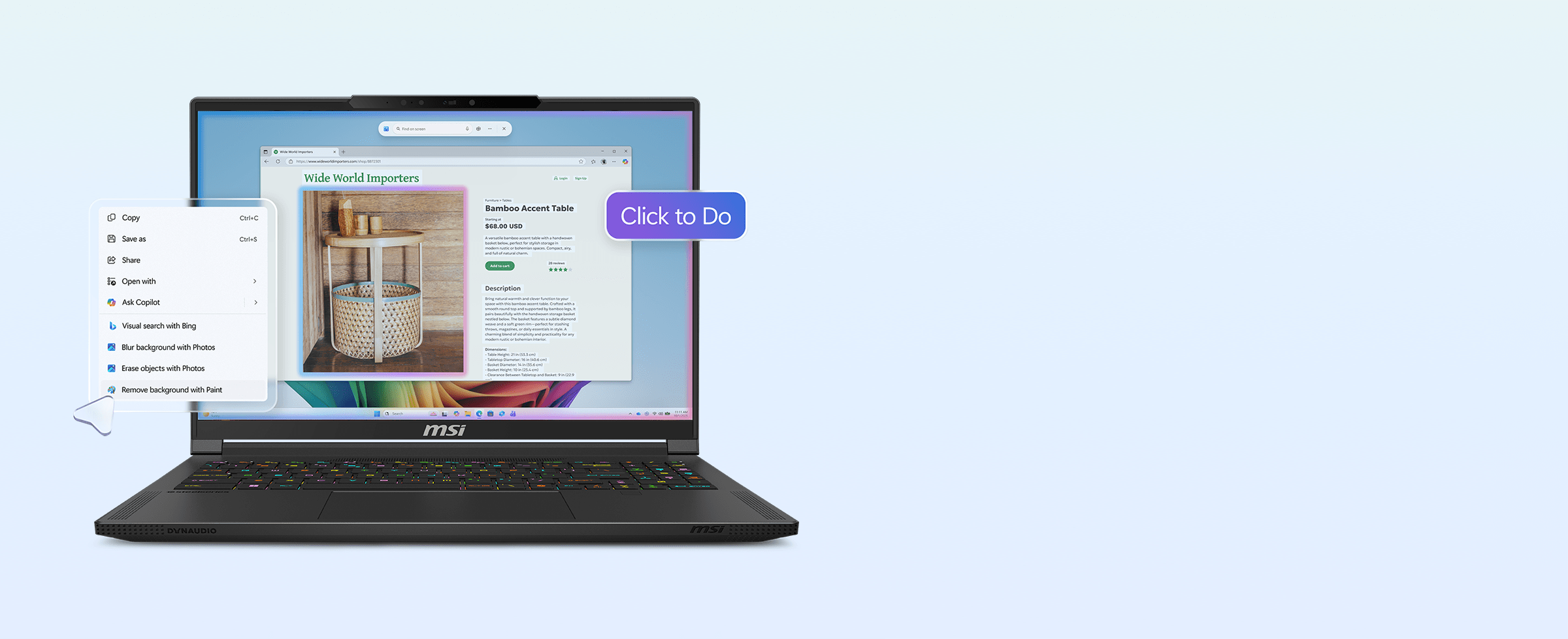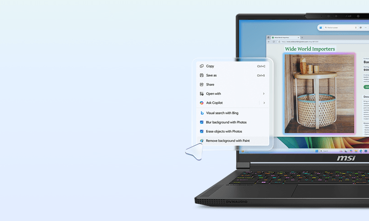 - 3 Las acciones con imágenes ya están disponibles en todos los dispositivos; otras acciones varían según la región, el idioma y el juego de caracteres del dispositivo. Se requiere suscripción para algunas acciones. Consulta aka.ms/copilotpluspcs