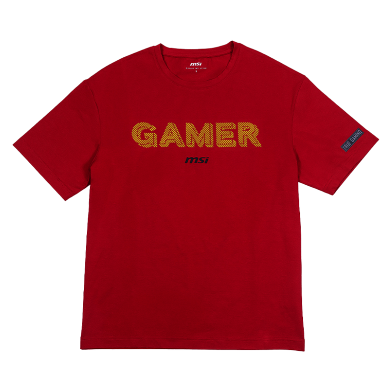 - El logotipo dorado “GAMER” en serigrafía con tinta de alta densidad crea una declaración contundente. El lema “TRUE GAMING” en la manga expresa tu auténtico espíritu gamer.