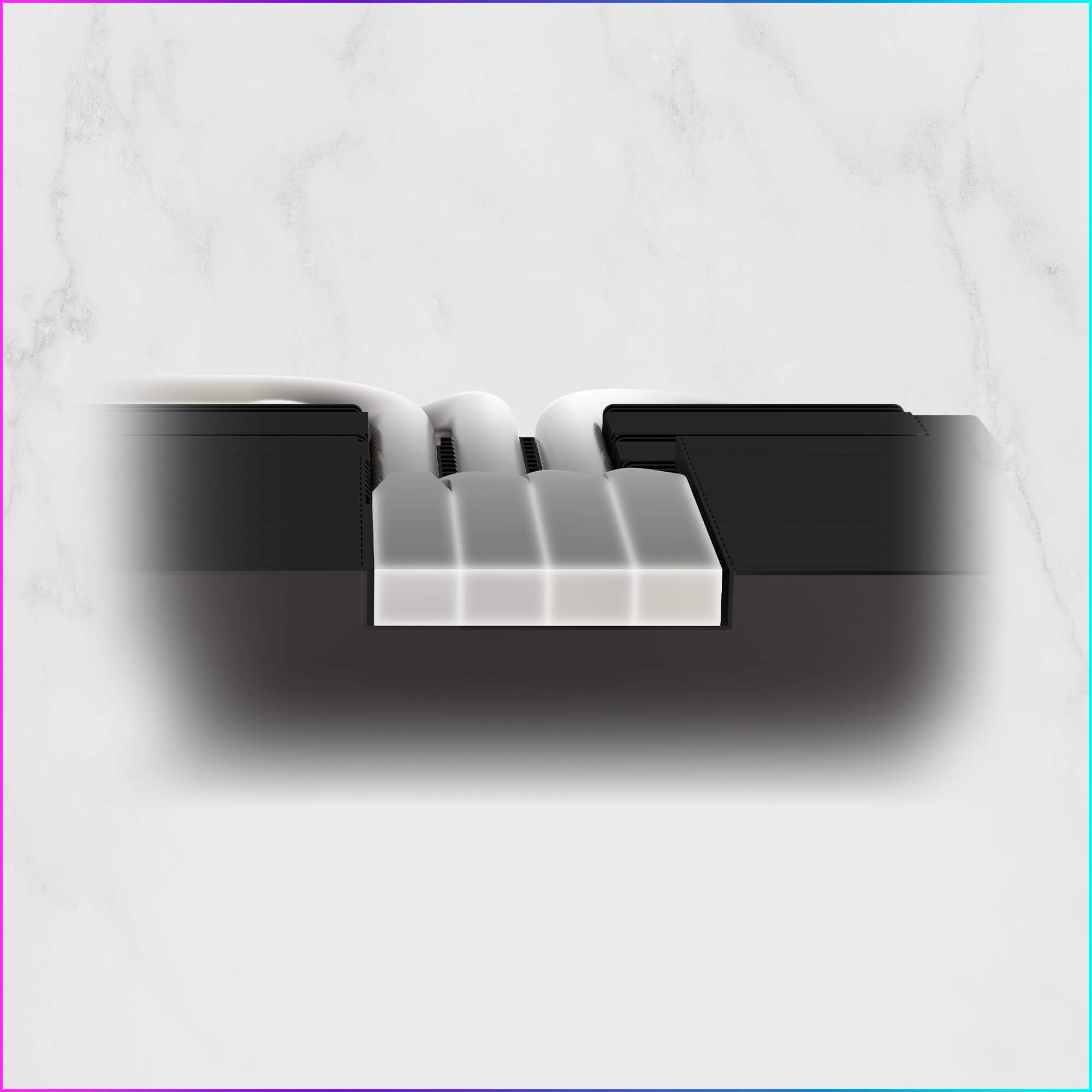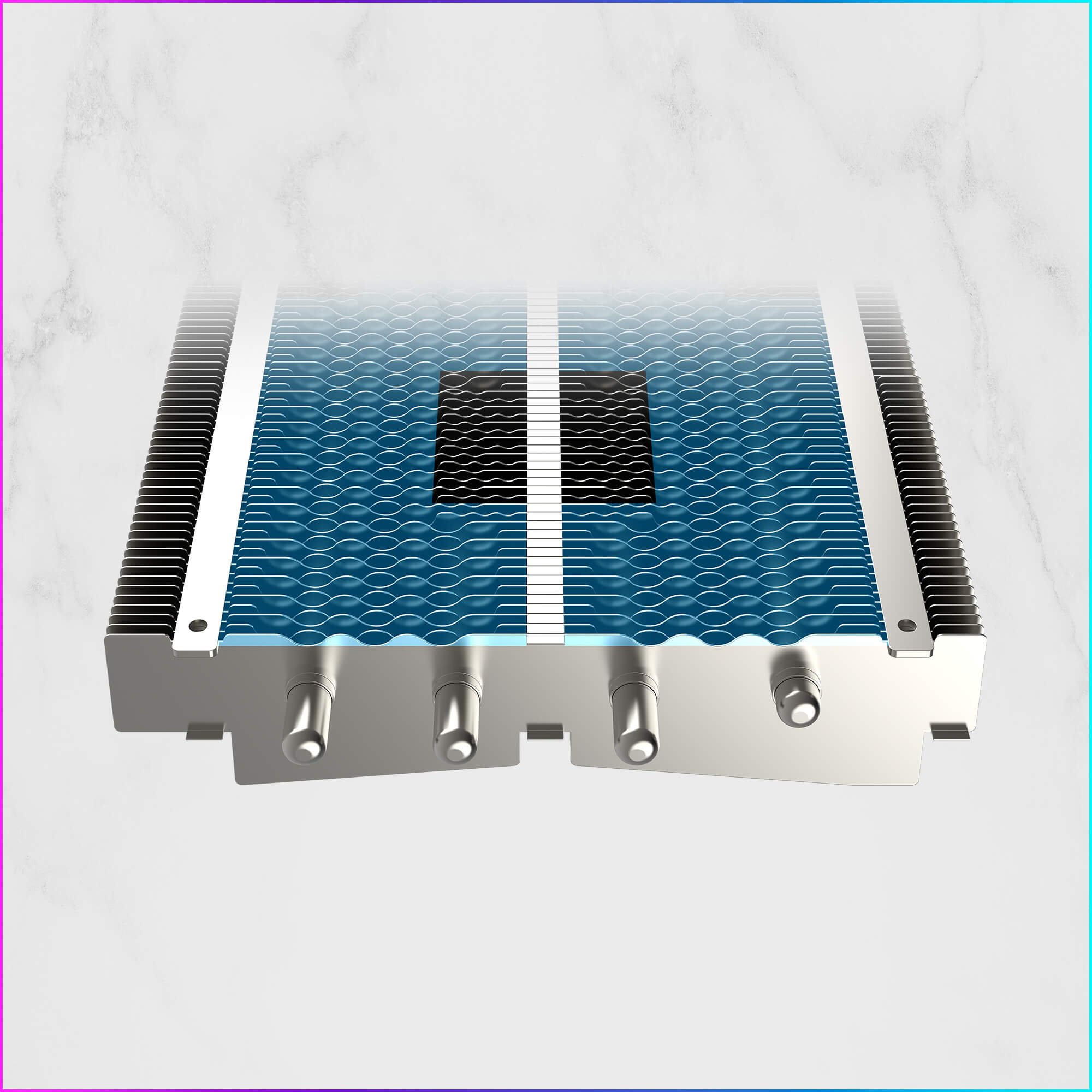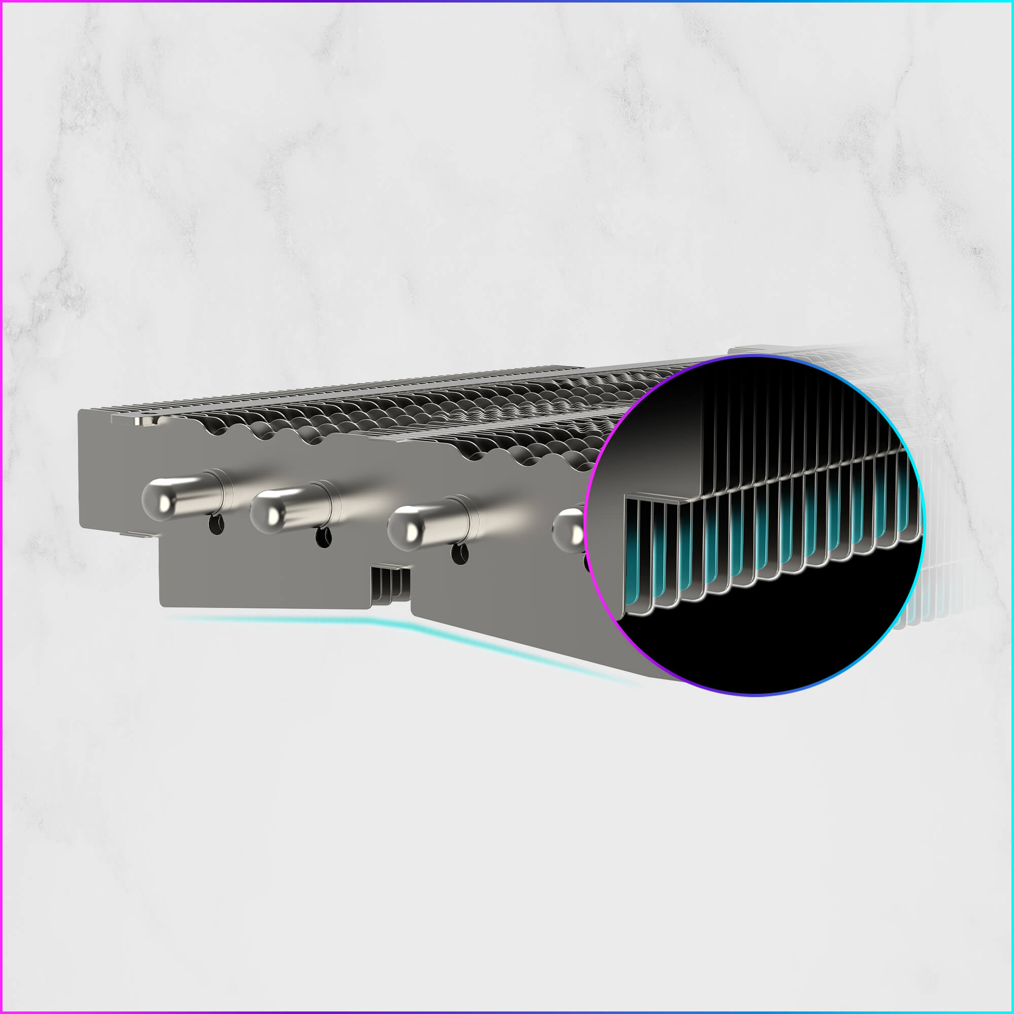 Los bordes ondulados refinados están diseñados con un patrón de aletas de diferentes alturas y ángulos de ingeniería de precisión. El flujo de aire del ventilador reduce las turbulencias y maximiza la disipación del calor, lo que se traduce en una eficiencia de refrigeración superior.