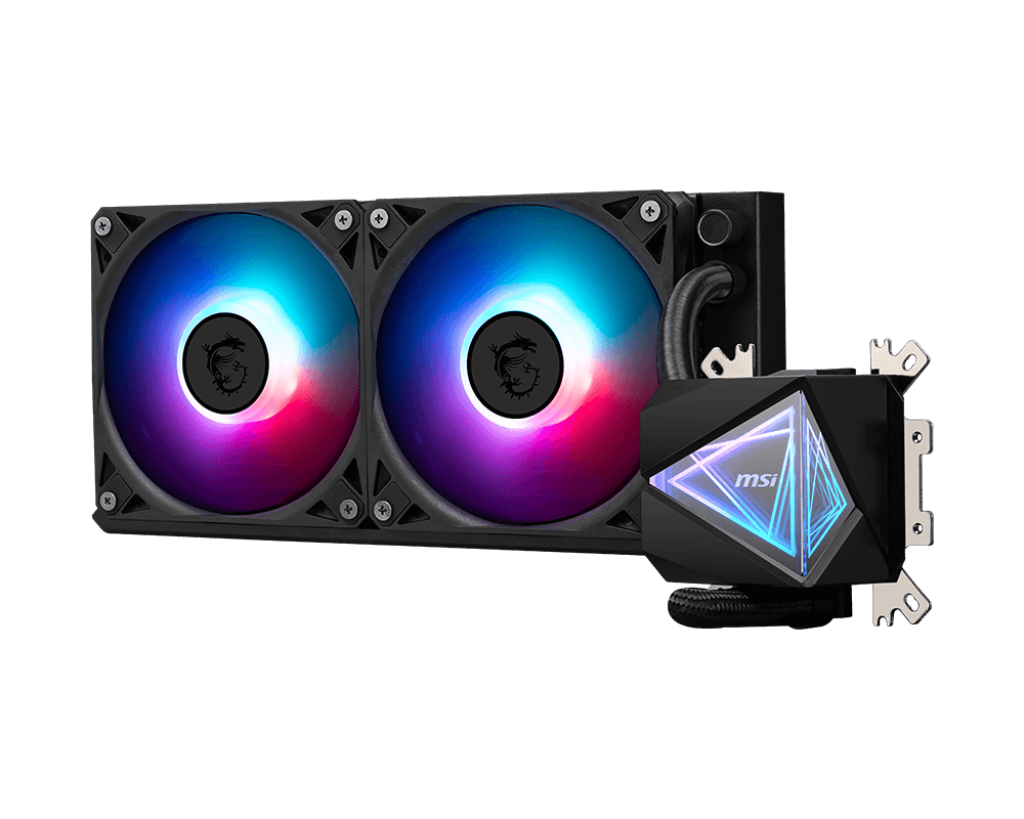 El nuevo refrigerador líquido MAG CORELIQUID I SERIES de MSI se inspira en los cortes fuertes y angulares de los diamantes. Su diseño presenta múltiples ángulos, complementados con un espejo infinito transparente de doble cara. Esto permite exhibir la artesanía del refrigerador en varios ángulos, mejorando el atractivo visual del espejo infinito con una experiencia multidimensional.