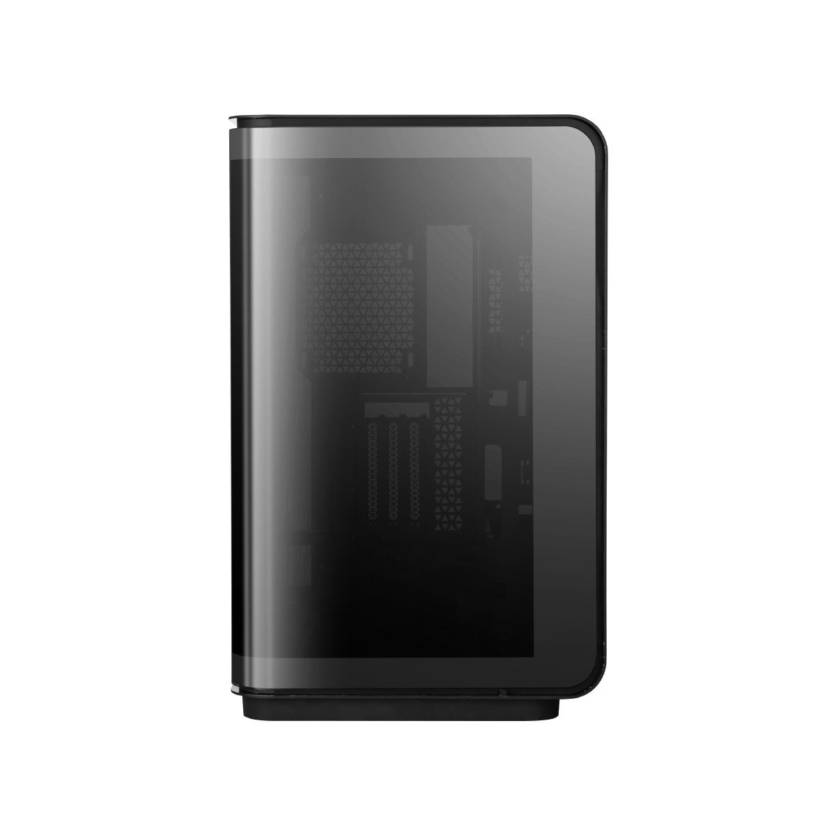 Esta caja de PC incorpora un diseño panorámico curvado de 270º con paneles de vidrio templado que permiten una vista completa del frontal. Además, estos paneles han sido tratados con un proceso de refuerzo térmico (Heat-strengthened, HS), lo que garantiza una apariencia atractiva junto con mayor seguridad y durabilidad.