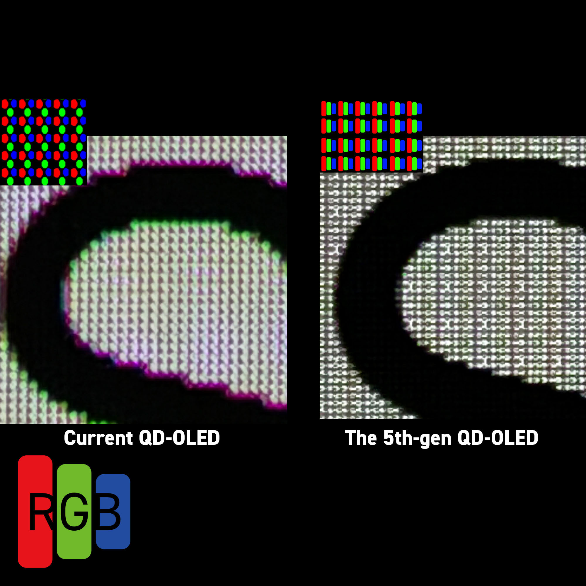 - El último panel QD-OLED de quinta generación: Un nuevo diseño de subpíxeles RGB Stripe para imágenes más nítidas