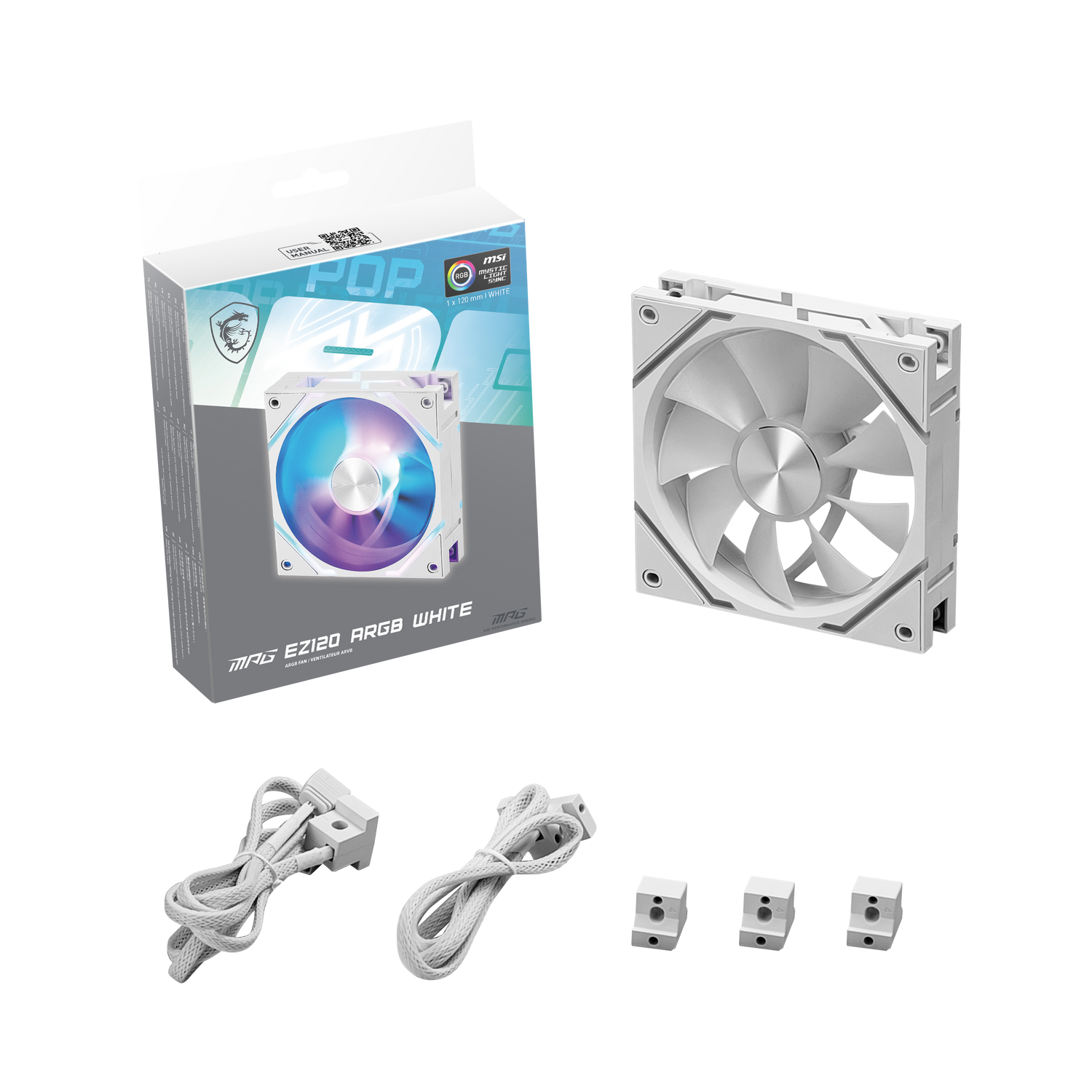 El MPG EZ120 ARGB WHITE simplifica el proceso de montaje, el enrutado de cables y la complejidad de la gestión del cableado. El imán integrado en el marco del ventilador facilita una conexión estable entre ventiladores.*